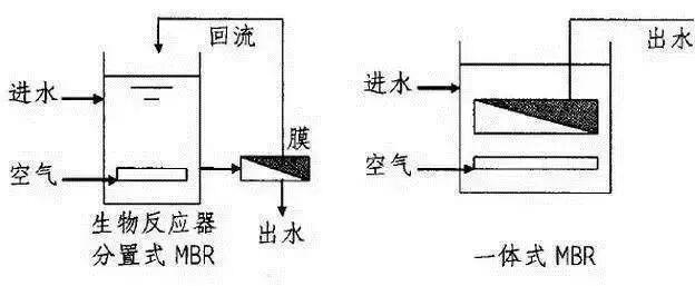 根据膜组件和生物反应器的组合方式,可将膜--生物反应器分为分置式、一体式以及复合式三种基本类型。(以下讨论的均为固液分离型膜--生物反应器)
