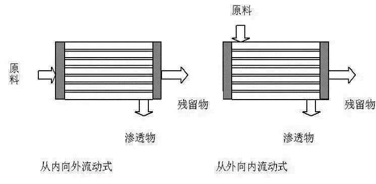 由膜和膜的支撑体构成,有内压型和外压型两种运行方式。实际中多采用内压型,即进水从管内流入,渗透液从管外流出。膜直径在 6~24mm 之间。